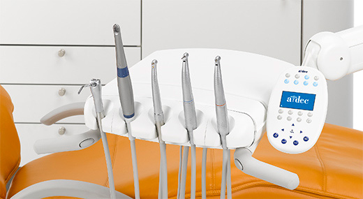 Las unidades dentales de A-dec fueron las primeras unidades en ubicar los instrumentos a una distancia cómoda del dentista sentado. Anteriormente, los dentistas realizaban los procedimientos de pie. La odontología en sillón de la actualidad tiene muchos beneficios ergonómicos y ha extendido la carrera profesional de muchos dentistas.