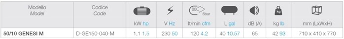 Ver más información del compresor odontológico Genesi 50/10 M: