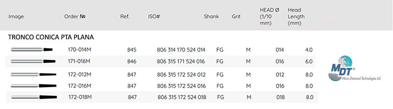 Principales características de la Fresa Diamante Tronco Conica Punta Plana de MDT: