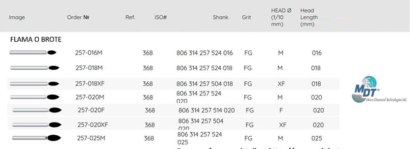 Descubra la excelencia en fresas de diamante y abrasivos para odontología con la Fresa Diamante Flama o Brote de MDT, el reconocido fabricante israelí en este sector.